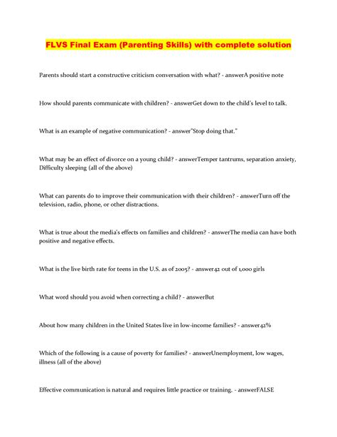 Read Online flvs parenting skills final exam answer key Audio CD BookBoon